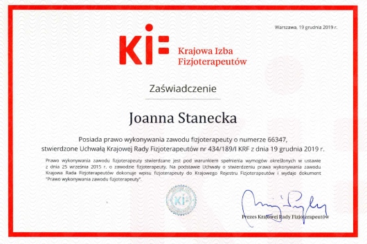 Bardzo polecam wizytę u Pani mgr Staneckiej:) Już po pierwszej wizycie jest lepiej. Oby więcej takich fizjoterapeutów. Profesjonalizm, empatia, fachowość, wszystko dobrze wyjaśnione, a przy tym miła atmosfera w gabinecie.