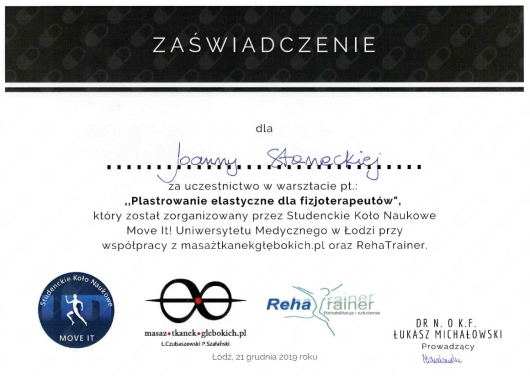 Bardzo cierpiałam na sztywność mięśni i bóle głowy, na które nie pomagały żadne leki przeciwbólowe, dopiero Pani Joasia przyszła mi z pomocą i przyniosła ulgę. Bardzo polecam Panią Joasię, to świetna specjalistka, która szczegółowo wysłucha pacjenta i dobierze najlepszą metodę terapii. Zawsze punktualna, poświęca pacjentowi cały swój czas, rehabilitacja trwa równe 60 minut.