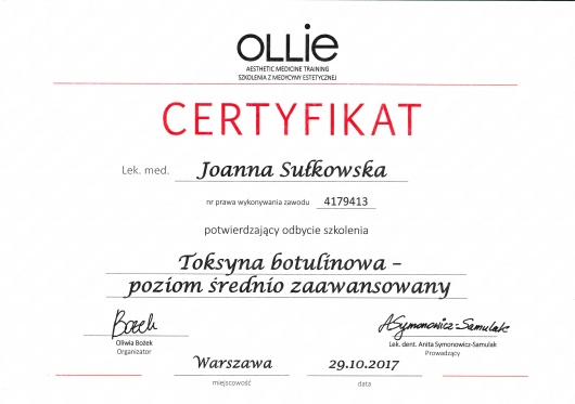 Jaki jest zakres porad oferowanych przez Joanna Sułkowska?Joanna Sułkowska to laryngolog, lekarz wykonujący zabiegi medycyny estetycznej. Na podstawie swojego doświadczenia i wykształcenia Joanna Sułkowska oferuje usługi takie jak: konsultacja laryngologiczna, czyszczenie uszu, płukanie uszu, płukanie zatok metodą Proetza, medycyna estetyczna - konsultacja, Powiększanie ust, Kwas hialuronowy - usta, Toksyna botulinowa 1 okolica, Toksyna botulinowa 2 okolice, Toksyna botulinowa 3 okolice.