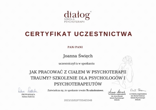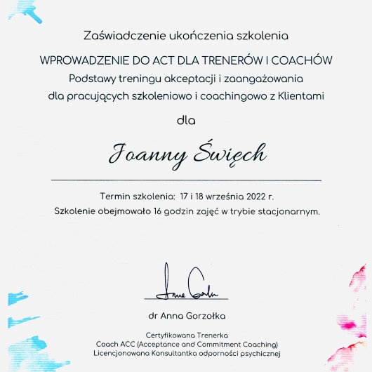 Z pasją, stale poszerzam swoją wiedzę i umiejętności uczestnicząc w certyfikowanych kursach i szkoleniach oraz konferencjach naukowych.