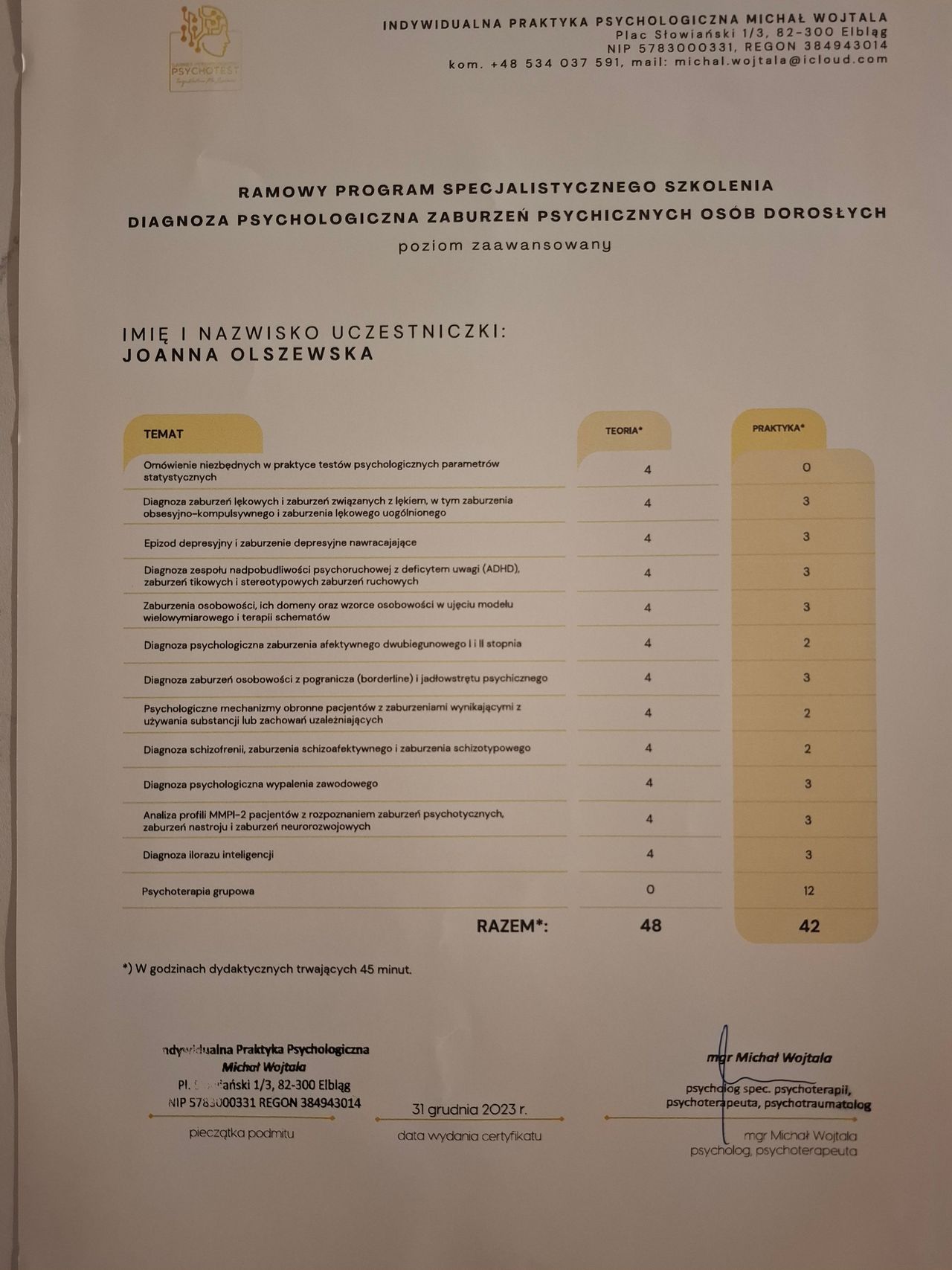 • Psycholog mgr Joanna Szczypek Centrum Psychobiologii • Konsultacja psychologiczna •