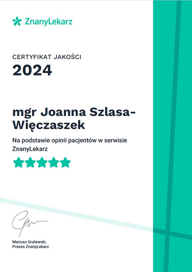 W codziennej pracy z pacjentami zawsze dopasowuję metody pracy do indywidualnych potrzeb, aby jak najefektywniej wspierać ich w pokonywaniu trudności.