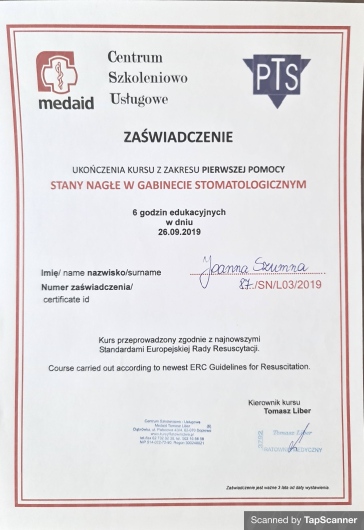 Jestem zachwycona Panią doktor! Wspaniałe podejście do pacjenta. Konkretnie, profesjonalnie i z uśmiechem. Byłam dziś na usunięciu ósemki - przed wizytą byłam bardzo zestresowana, bo wcześniej nie miałam nawet nigdy znieczulenia. Jednak po wejściu do gabinetu i rozmowie z Panią doktor byłam już spokojna. Sam zabieg usunięcia był bezbolesny i trwał tylko chwilę. Od razu umówiłam się na kolejne usunięcie ósemki. Bardzo polecam wizytę u Pani dr ! Szczególnie osobom, które panicznie boja się wizyty u stomatologów.