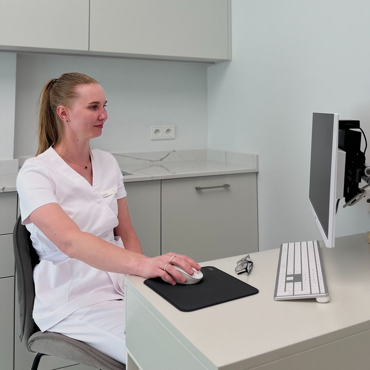 W codziennej pracy wykorzystuję mikroskop, aby zapewnić maksymalną precyzję i skuteczność leczenia.