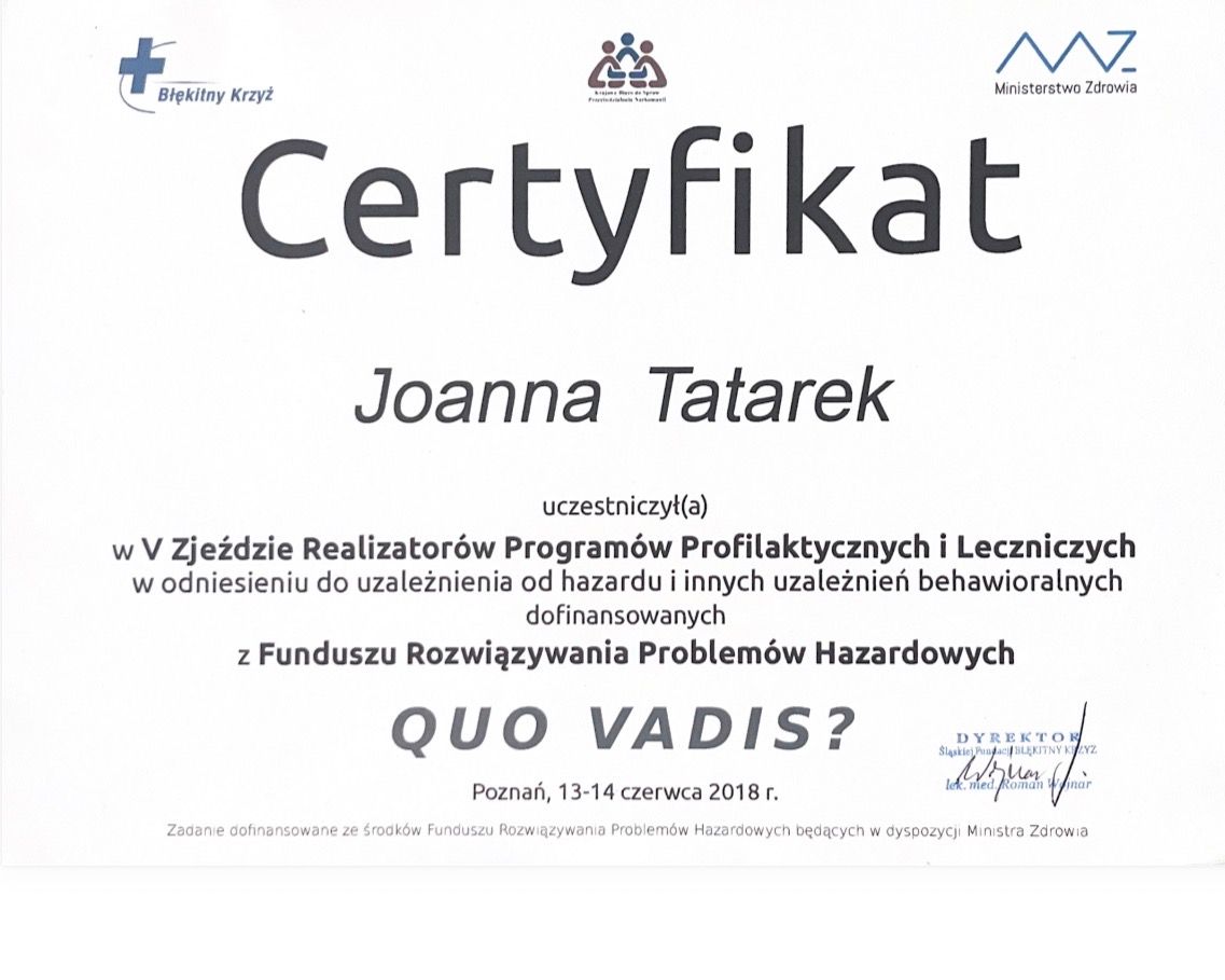 • Gabinet psychologiczno-psychoterapeutyczny Joanna Tatarek • psychoterapia uzależnień •
