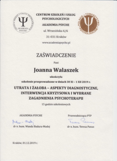• Gabinet Psychologiczny mgr Joanna Walaszek • konsultacja psychologiczna (pierwsza wizyta) •