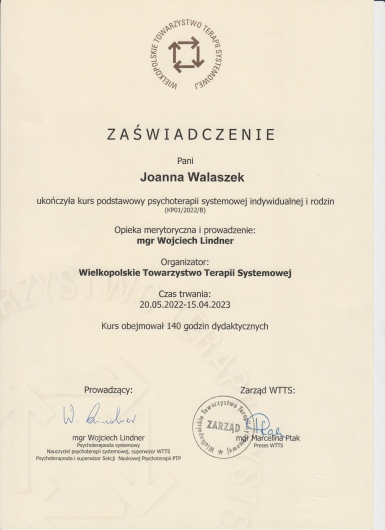 Jestem terapeutą systemowym w trakcie certyfikacji.