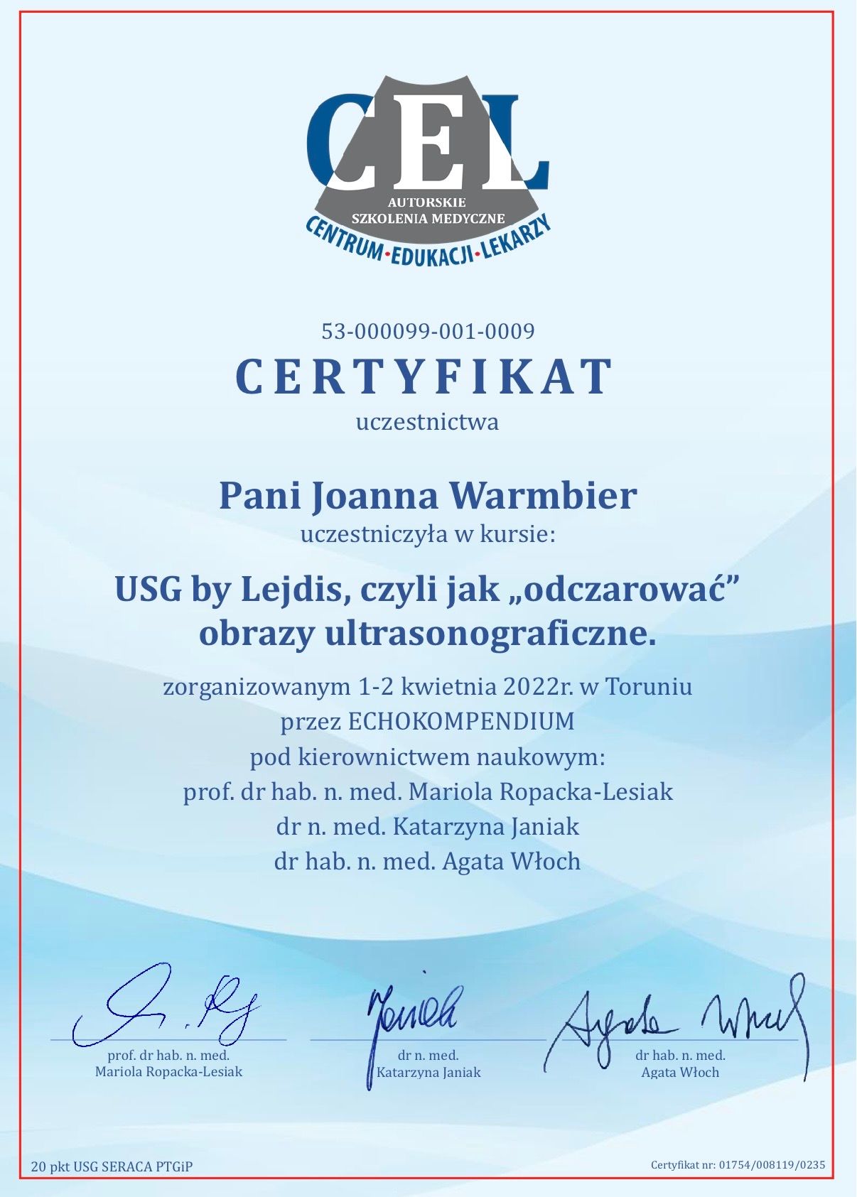 • Ginekologia Joanna Warmbier • konsultacja ginekologiczna + USG + cytologia •