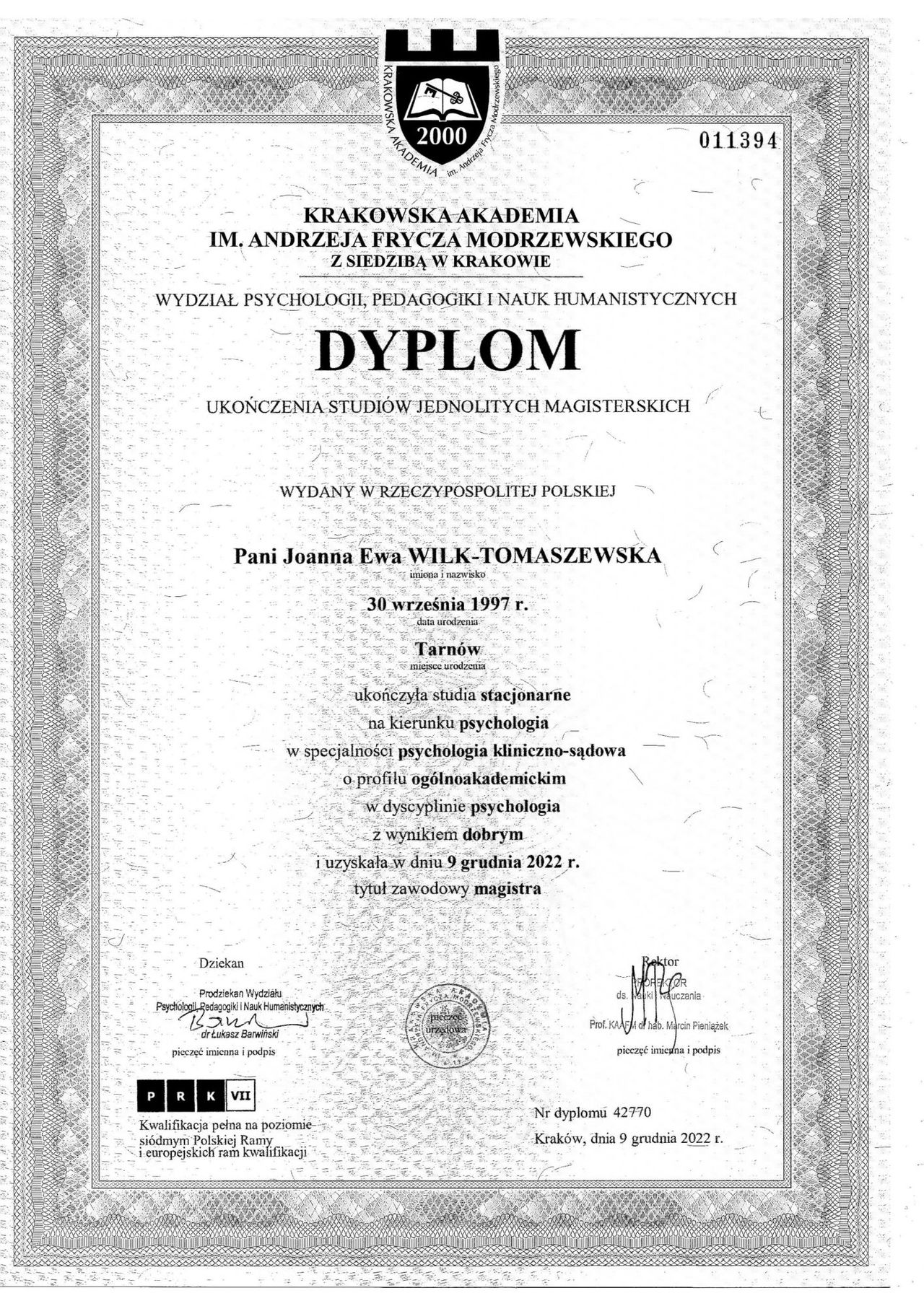 Psycholog mgr Joanna Wilk - Tomaszewska