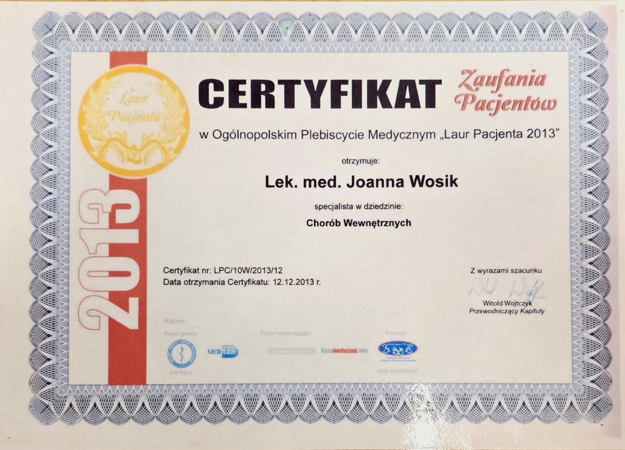 Miałem przyjemność odbyć wizytę u pani lek. Joanny Wosik i była to naprawdę świetna wizyta. Atmosfera w gabinecie była bardzo przyjemna, a jednocześnie wszystko odbywało się z profesjonalizmem godnym specjalisty. Podczas wizyty czułem się w pełni zaopiekowany, nie było się do czego przyczepić. Wychodząc z gabinetu, byłem pewny, że moje problemy zostaną rozwiązane dzięki pani doktor. Zdecydowanie polecam - naprawdę godny zaufania lekarz!