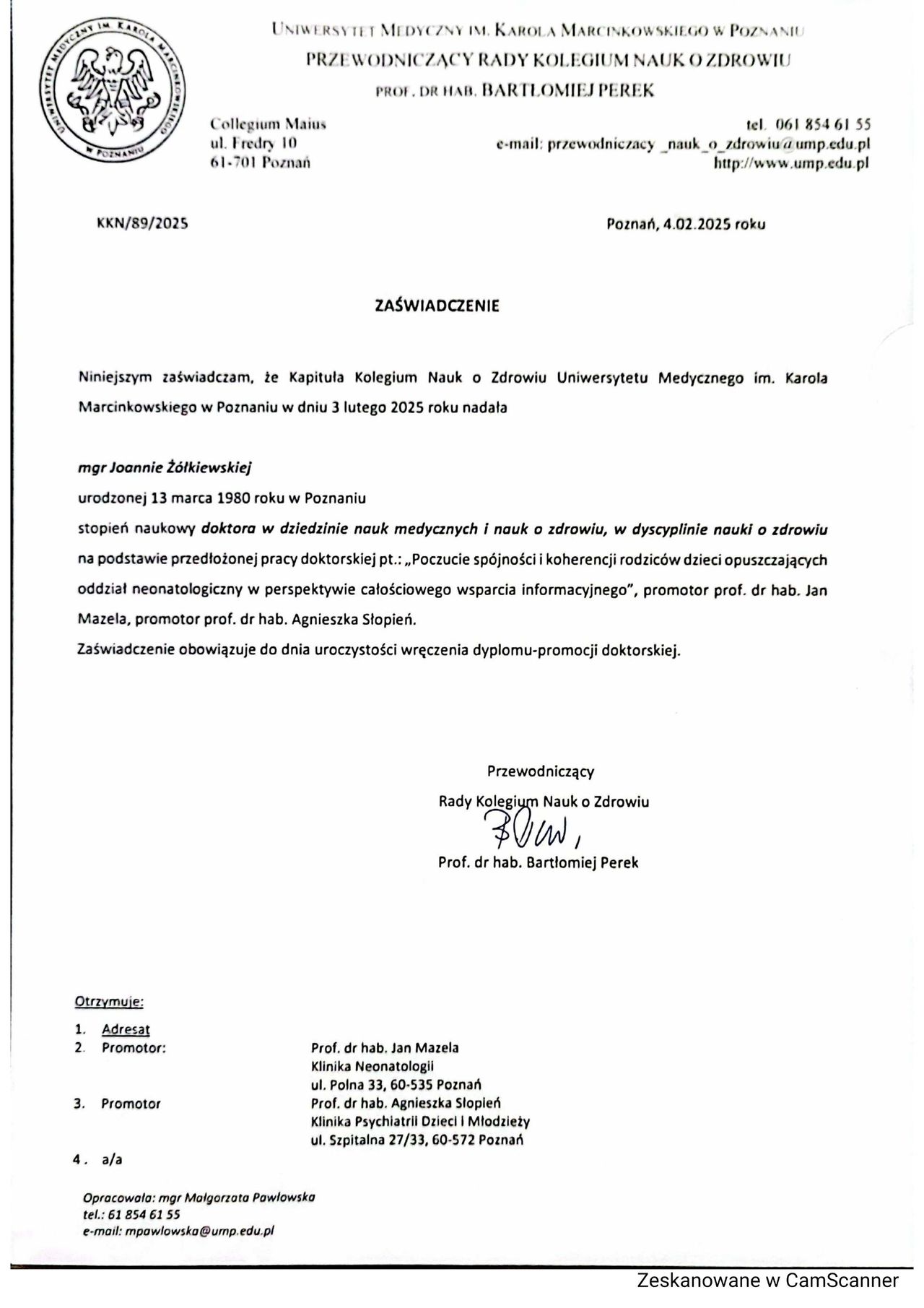 dr n. med. i n. o zdr. Joanna Żółkiewska