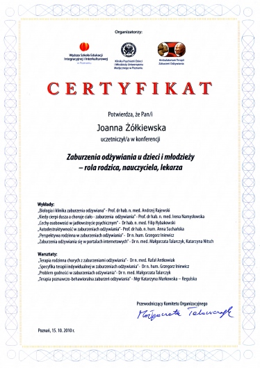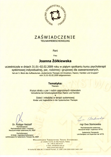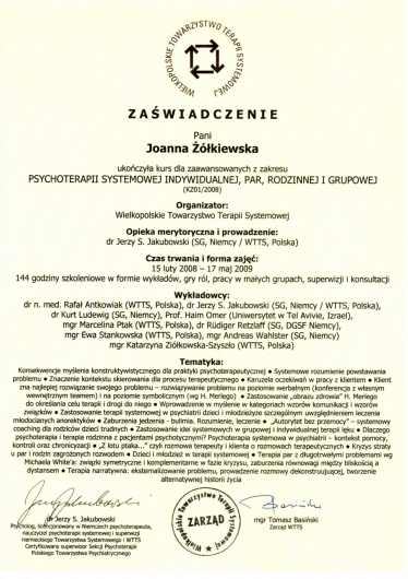 Mam nadzieję, że opinia ta będzie stanowić wskazówkę zarówno dla przyszłych pacjentów, jak i dla pani Joanny w jej dalszym rozwoju zawodowym, czego jej życzę.• Wielkopolskie Centrum Terapii Par i Rodzin • Inny •
