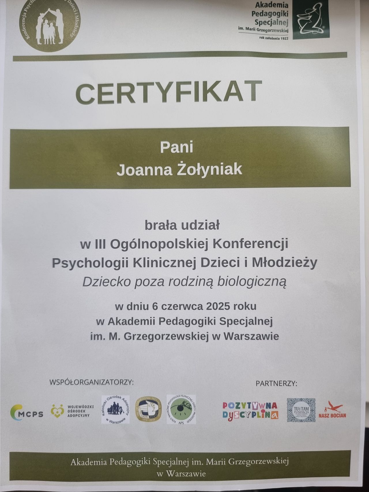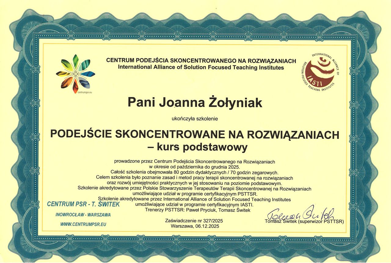 Skończyłam specjalistyczne szkolenie terapii skoncentrowanej na rozwiązaniach (TSR)