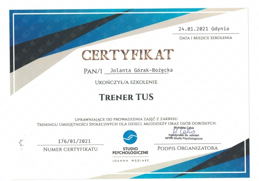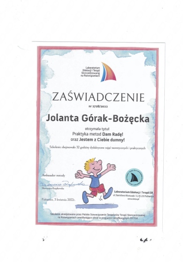 Polecam Panią Jolanta Górak- Bożęcka ! Jest to osoba której można zaufać ! słucha , słucha i raz jeszcze słucha.. ma ogromną wiedzę jako psycholog i świetne podejście . Polecam w 100% !!!!