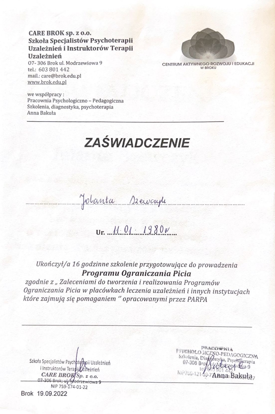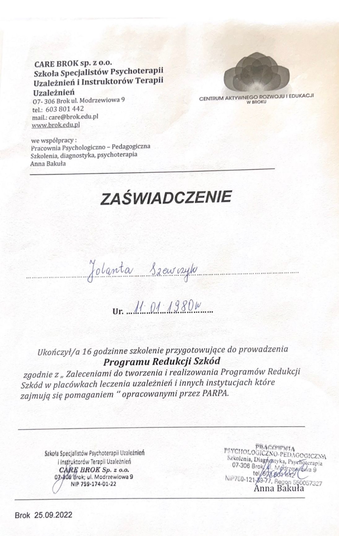 Z całego serca chciałabym wyrazić swoją ogromną wdzięczność i uznanie dla terapeutki, która od dłuższego czasu wspiera moją córkę w walce z uzależnieniem. To osoba nie tylko kompetentna i doświadczona, ale przede wszystkim pełna empatii, zaangażowania i ludzkiego ciepła. W sytuacjach kryzysowych nie ogranicza się do swojej roli zawodowej – kiedy moja córka potrzebowała natychmiastowej pomocy, nie zawahała się przyjechać do domu i osobiście zawieźć ją do szpitala. Takie poświęcenie i gotowość do działania są dowodem na to, że traktuje swoich podopiecznych z głębokim szacunkiem i troską. Dzięki jej pracy, cierpliwości i wierze w drugiego człowieka, moja córka czuje się widziana i ważna, a to w leczeniu uzależnienia ma kluczowe znaczenie. Z całym przekonaniem mogę powiedzieć, że trafiliśmy pod opiekę kogoś wyjątkowego.