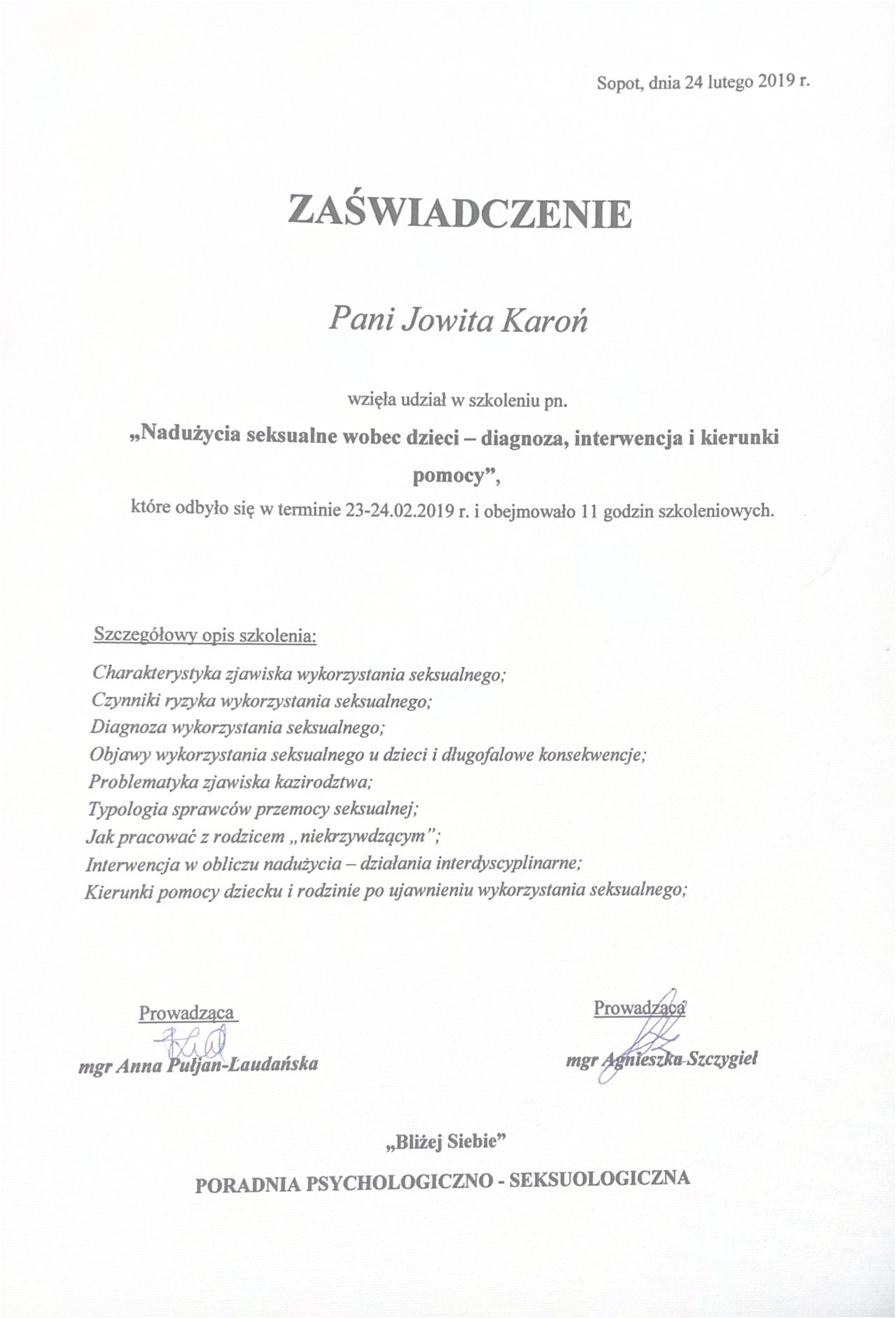 Jestem bardzo zadowolona z wizyta u Pani Jowity. Łatwo było mi się przy niej otworzyć i przełamać wstyd. Wizyty były dla mnie ogromnym wsparciem w trudnym momencie mojego życia. Dużo empatii czułam i zaangażowania.