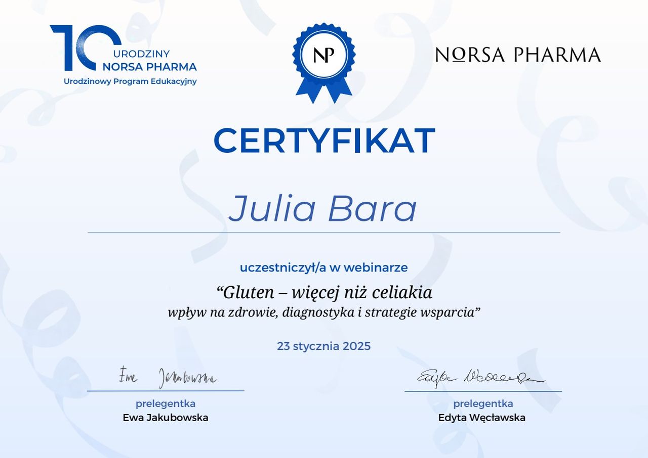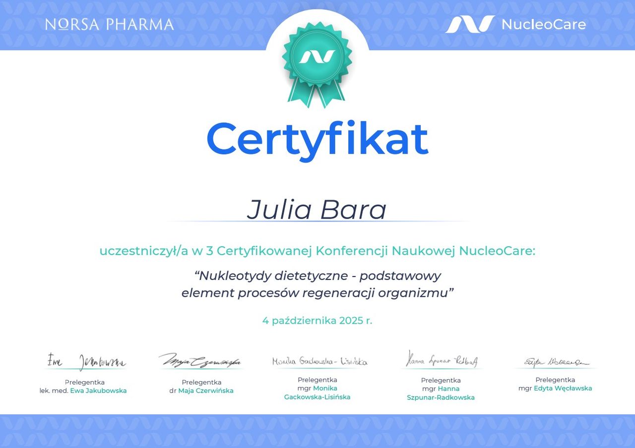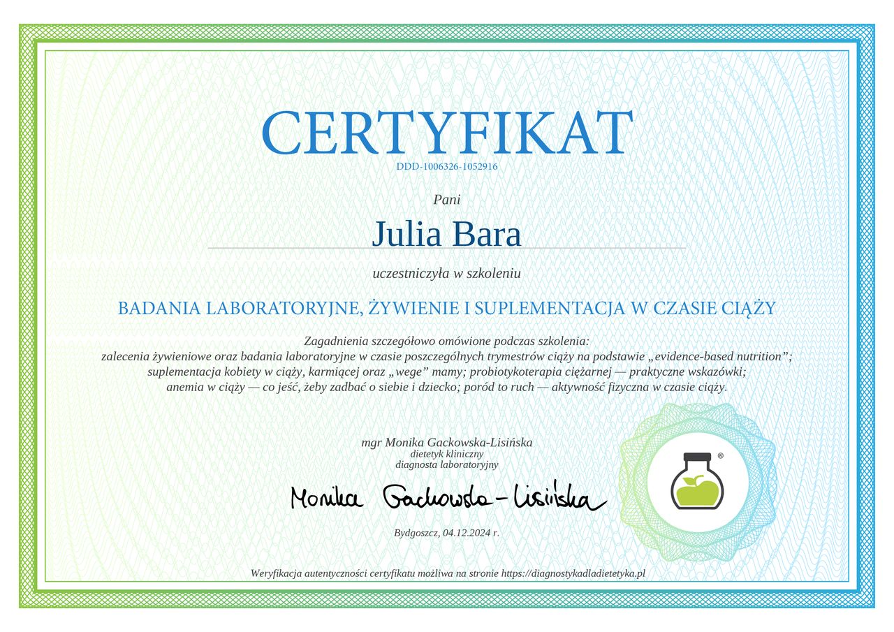 Nazywam się Julia Bara i jestem dietetyczką kliniczną.