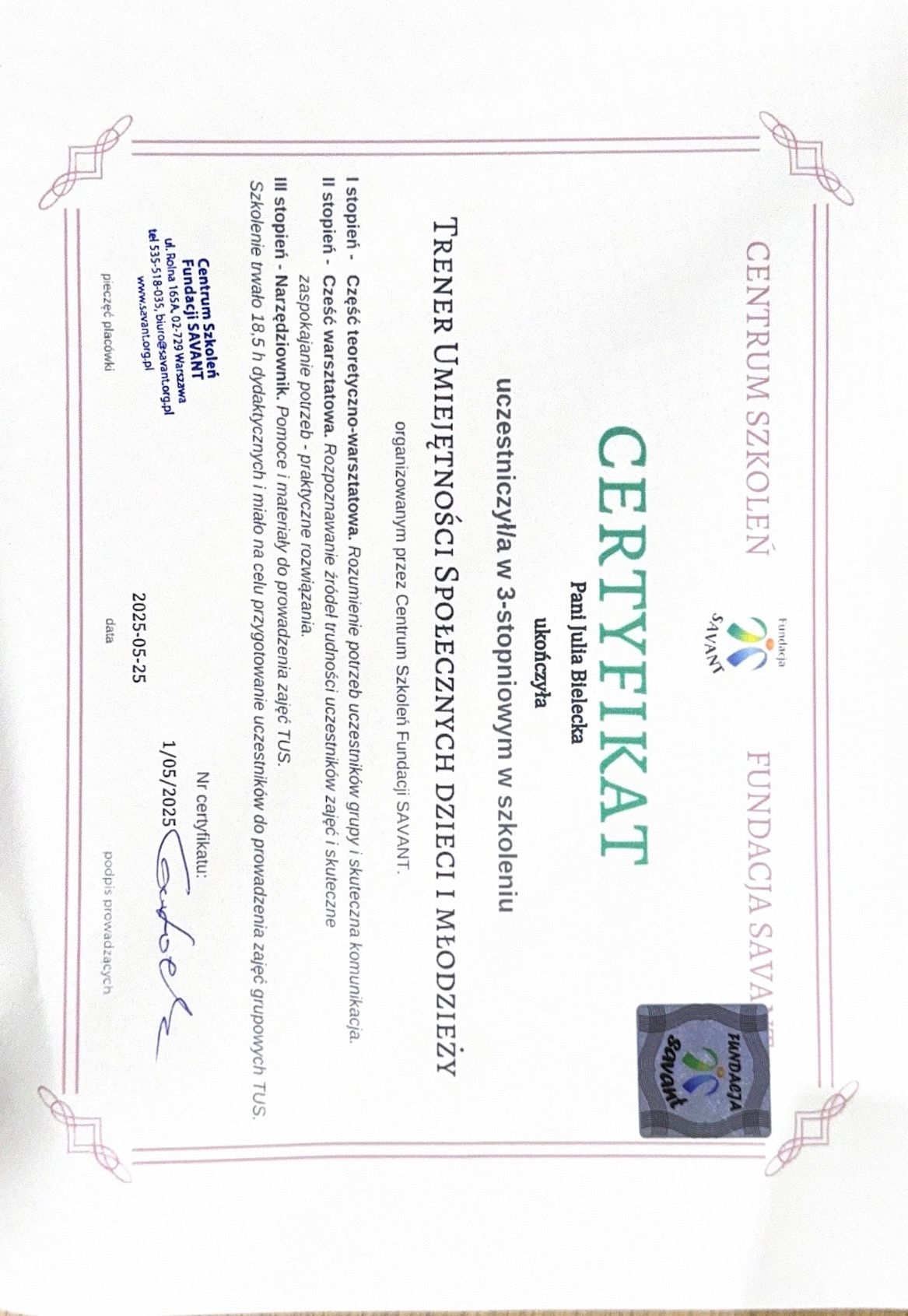 Jestem psychologiem, absolwentką Uniwersytetu SWPS w Warszawie, gdzie ukończyłam specjalność z psychologii klinicznej i zdrowia. Na co dzień wspieram osoby dorosłe, młodzież oraz dzieci w lepszym zrozumieniu siebie i swoich trudności.