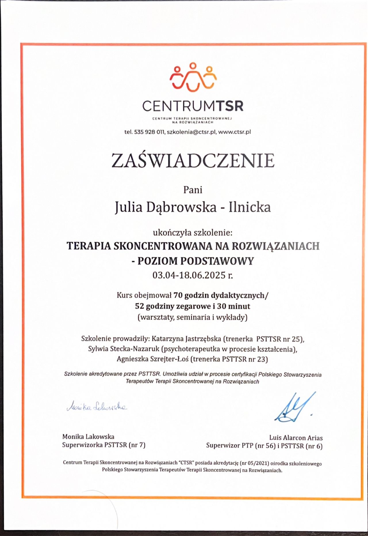 Swoją pracę regularnie poddaję superwizji, traktując ją jako ważny element dbałości o wysokie standardy etyczne i merytoryczne udzielanej pomocy.