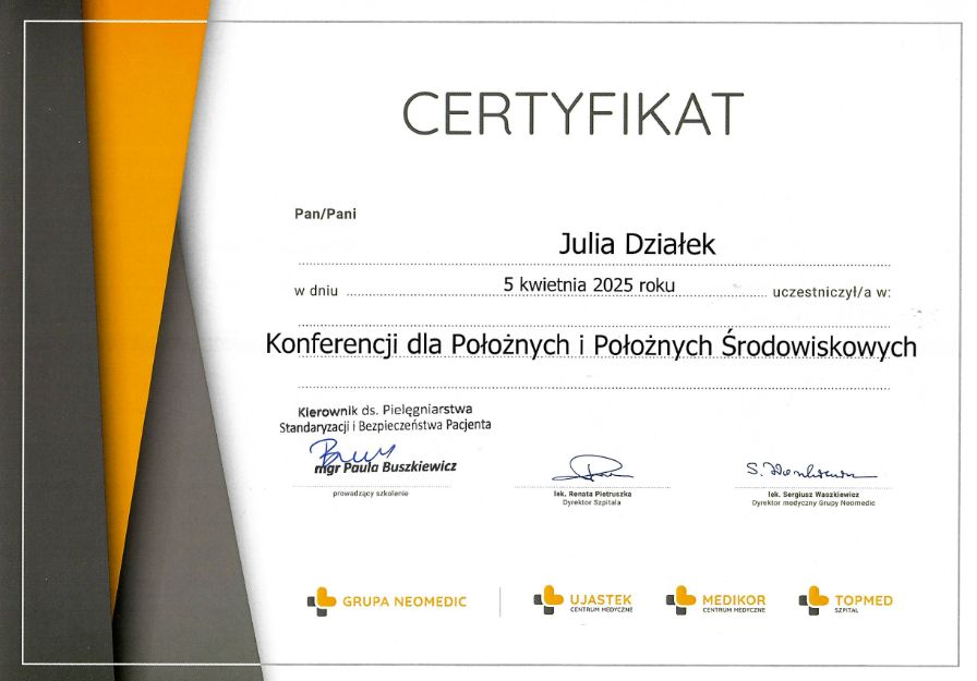 Jestem absolwentką Collegium Medicum Uniwersytetu Jagiellońskiego (2023), obecnie w trakcie specjalizacji w dziedzinie położnictwa i ginekologii. Od 2022 roku pracuję w placówkach Medicover w Krakowie – przyjmuję pacjentki w lokalizacjach przy ul. Sternbacha 1 (Czerwone Maki) oraz ul. Fabrycznej 1.