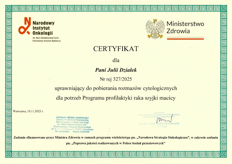 - diagnostyka i konsultacje w kierunku wirusa HPV
