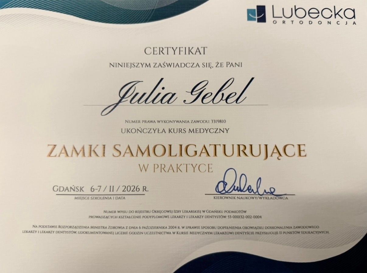 Jaki jest zakres porad oferowanych przez Julia Gebel?Julia Gebel to stomatolog. Na podstawie swojego doświadczenia i wykształcenia Julia Gebel oferuje usługi takie jak: Konsultacja stomatologiczna, wizyta w związku z bólem zęba, konsultacja protetyczna, leczenie kanałowe pod mikroskopem, Invisalign, Konsultacja - ortodoncja nakładkowa.