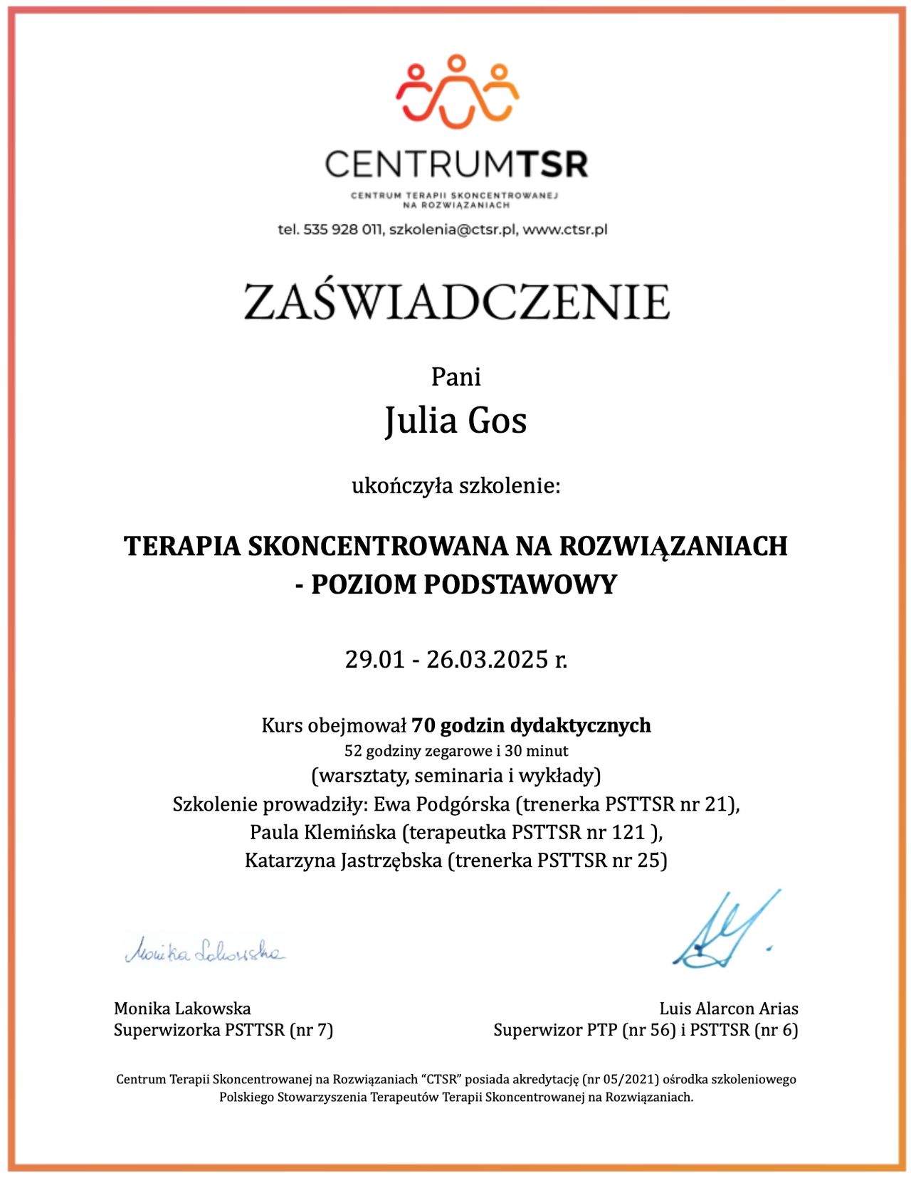 Pani Julia profesjonalnie przeprowadziła spotkanie. Poczułam się wysłuchana i zrozumiana. Do tematu podeszła z empatią i spokojem. Jestem wdzięczna że na nią trafiłam. Serdecznie polecam