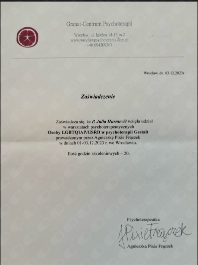 • Julia Hurnievič - Praga konsultacja psychoterapeutyczna  •