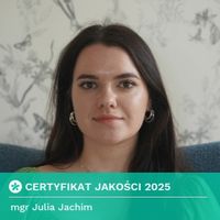 Czy Julia Jachim przyjmuje online, bez konieczności pojawiania się w placówce?Tak, Julia Jachim oferuje konsultacje online. Wybierz opcję „konsultacja online” przy umawianiu wizyty, a zobaczysz dostępne terminy.