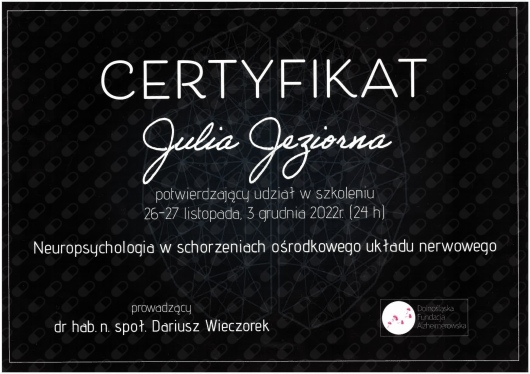 W swojej pracy wykorzystują techniki wywodzące się z psychoterapii poznawczo-behawioralnej (CBT). Systematycznie biorę udział w kursach i szkoleniach specjalistycznych, które pozwalają mi na wzbogacenie warsztatu i pogłębienie wiedzy potrzebnej do udzielania indywidualnej pomocy każdemu pacjentowi.