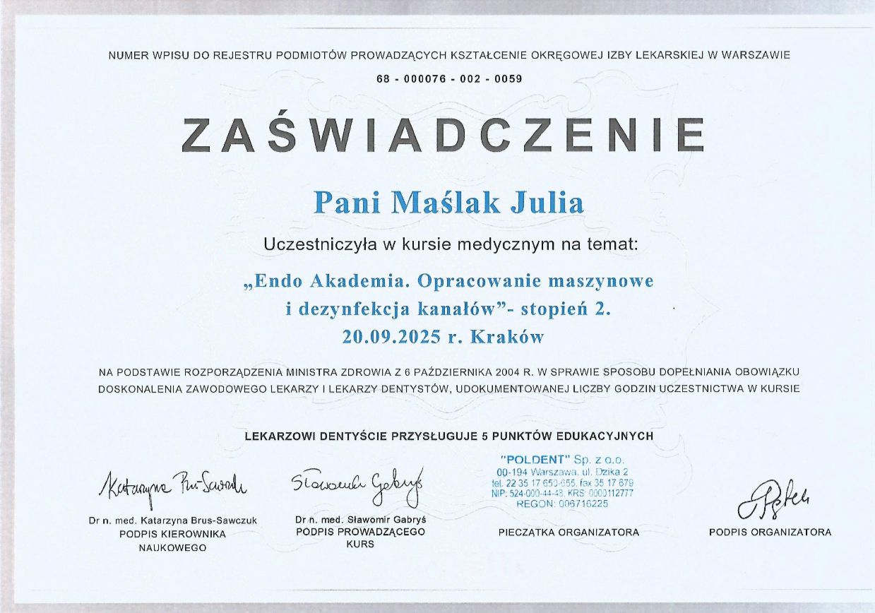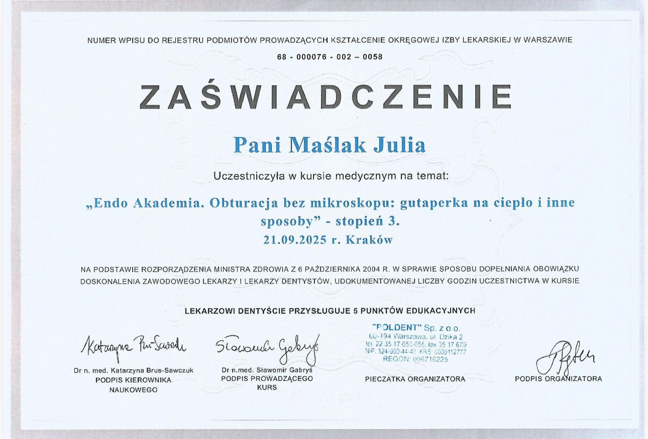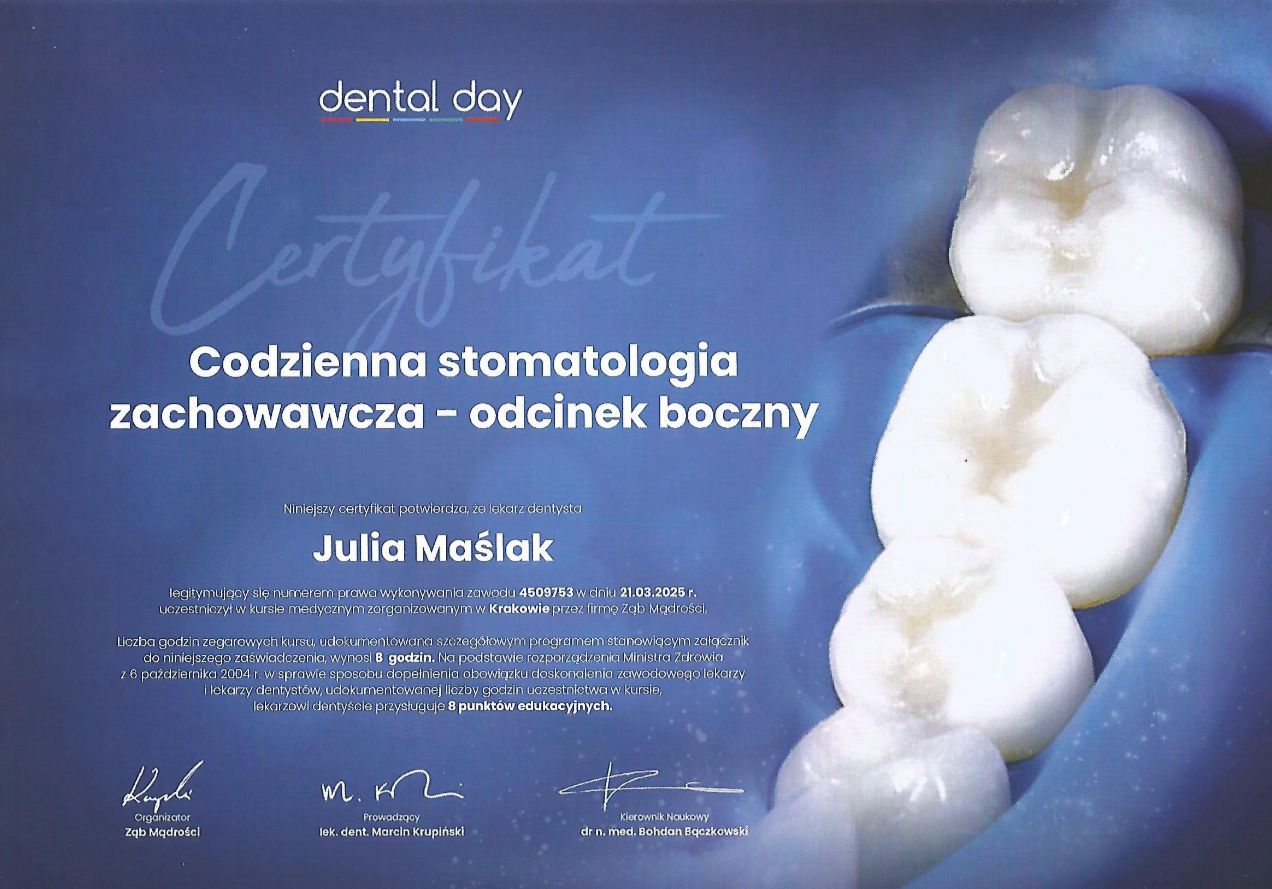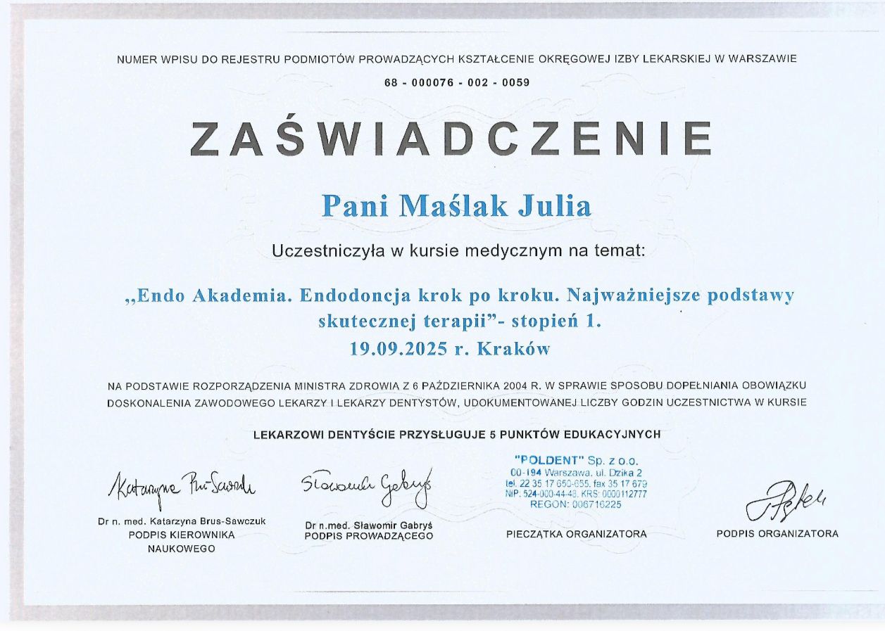 Umów się na przegląd klasy Premium u dr Julii Maślak.