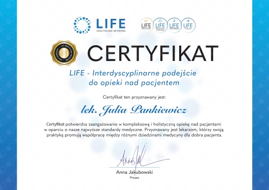 lek Julia Pankiewicz prowadzi konsultacje w LIFE Medical Center.