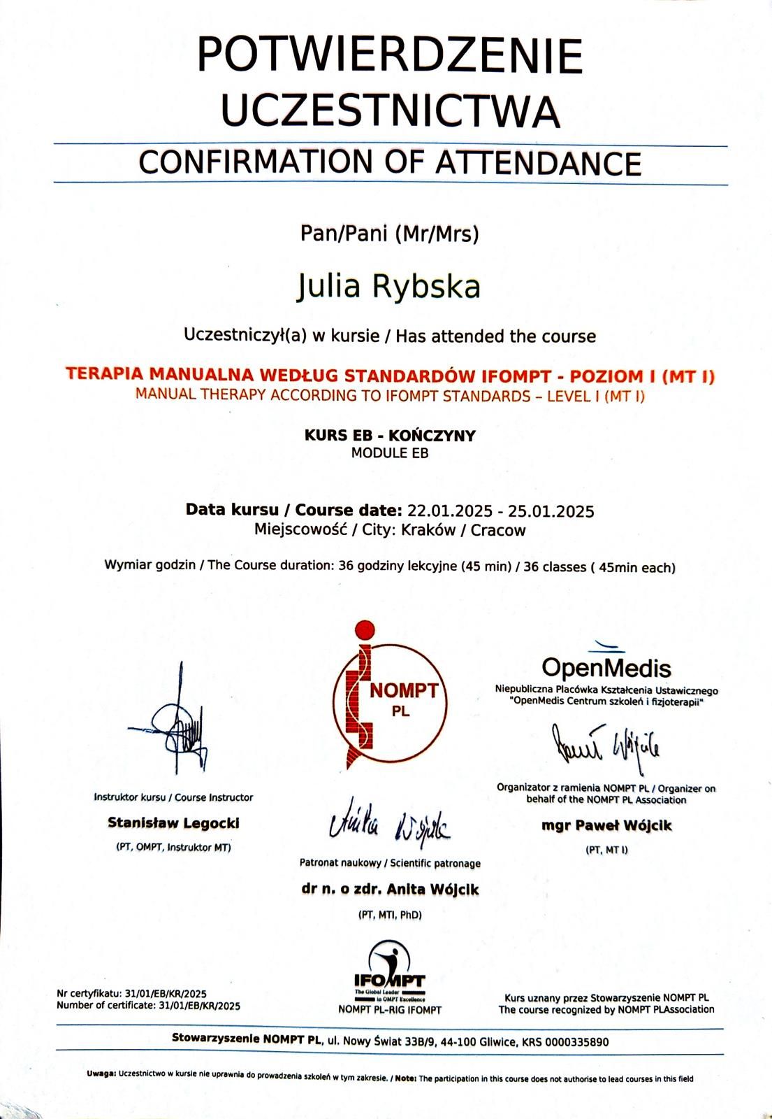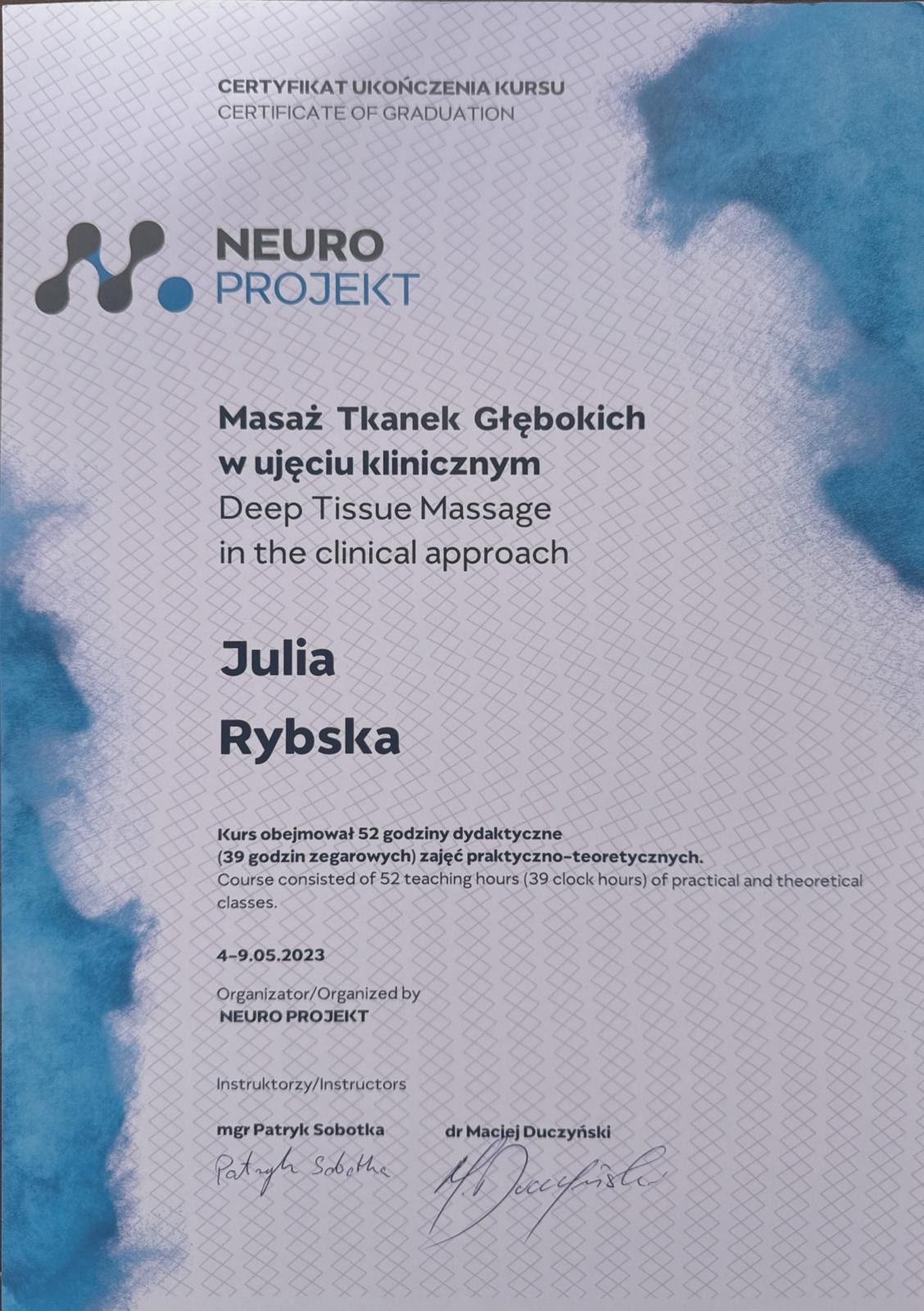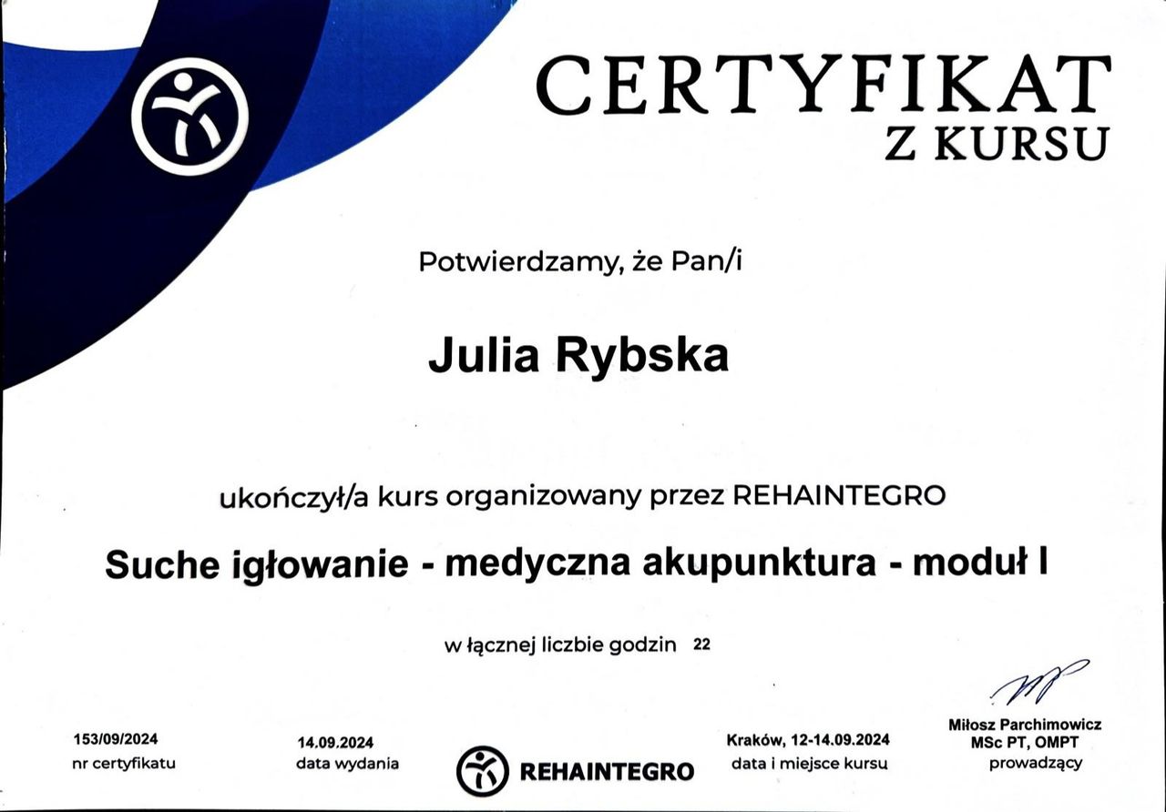 Miejsce z nowoczesnym sprzętem, USG, ESWT, Platforma stabilometryczna FreeMed MAXI. Nowoczesny sprzęt do analizy i ćwiczeń K-FORCE łącznie z EMG pracujące na oprogramowaniu KINVENT, w pełni wyposażone 2 salki treningowe do treningów medycznych, ćwiczeń z dokładnie dobranym indywidualnie planem. Aparatura do ćwiczeń stabilizacji MultiReha Sitbalance, oraz platforma do ćwiczeń RehaBoard. Współpraca z licznymi lekarzami, pełna kontrola specjalistów nad postępem rehabilitacji, Raporty postępów tworzone są po każdej sesji, albo konkretnym cyklu. Terapia Manualna, połączona z terapia funkcjonalną oraz treningiem pod kontrolą doświadczonych Fizjoterapeutów, Ortopedów oraz Lekarzy innych specjalizacji a wszystko na nowoczesnym sprzęcie to doskonałe połączenie w szybkim powrocie do zdrowia.