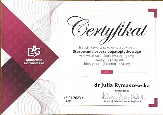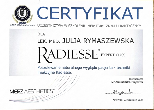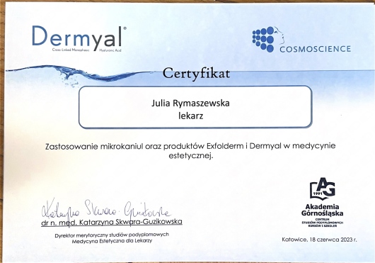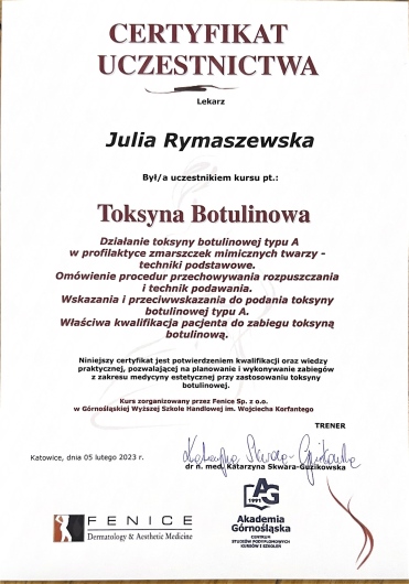 Pani Doktor Julia Rymaszewska jest zaangażowana, profesjonalna i niezwykle skuteczna. Widać, że naprawdę zależy jej na pacjencie – wszystko dokładnie tłumaczy, a zabiegi wykonuje z ogromną precyzją i spokojem. Czuję się u niej bezpiecznie i wiem, że jestem w dobrych rękach. Zdecydowanie polecam!
