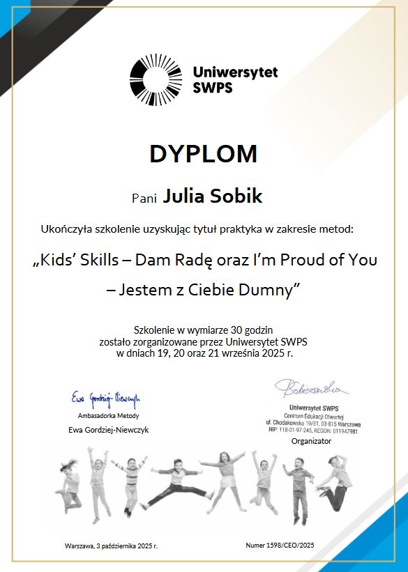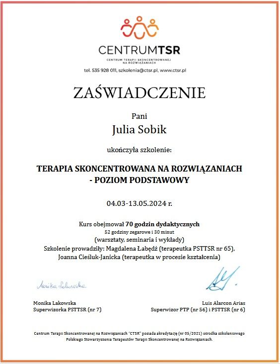 Sesje prowadzone w sposób bardzo precyzyjny i zrozumiały, finalizowane workiem praktycznych porad i skutecznych technik w radzeniu sobie z ADHD