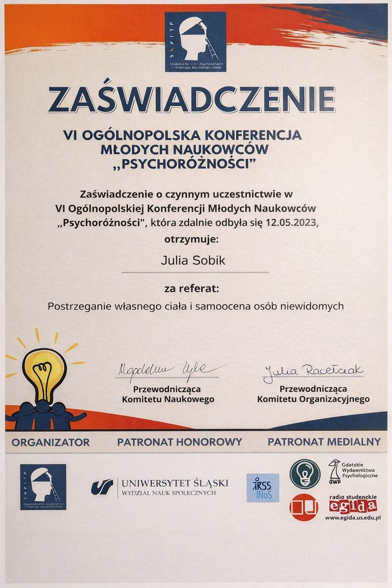 Doświadczenie zdobywałam w różnych miejscach. W Amed Centrum Dobrych Zmian w Gdowie prowadzę konsultacje indywidualne, przeprowadzam obserwacje dzieci, przygotowuję zalecenia diagnostyczne i pracuję z rodzicami, a także prowadzę terapię psychologiczną dla młodzieży. Wspieram również studentów w ramach konsultacji psychologicznych. W Centrum Zdrowia Psychicznego zajmuję się wywiadami psychologicznymi, diagnozą potrzeb, ustalaniem celów terapeutycznych oraz współpracą w ramach zespołu interdyscyplinarnego. Prowadziłam także szkolenia dla pracowników pieczy zastępczej dotyczące pracy z dziećmi i młodzieżą ze spektrum autyzmu, a dzięki współpracy z Fundacją Sustinae wspierałam rodziny dzieci z niepełnosprawnościami, zarówno w codziennych trudnościach, jak i w sytuacjach kryzysowych.