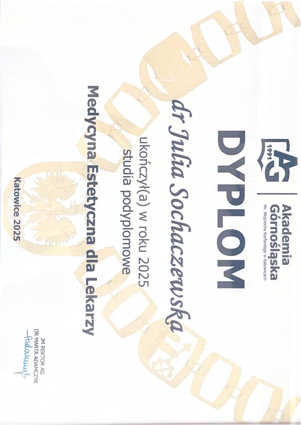 Praca w tym środowisku pozwoliła mi nie tylko pogłębić wiedzę medyczną, ale także rozwinąć empatię i wrażliwość na potrzeby najmłodszych pacjentów oraz ich rodzin. Z zamiłowania do estetyki i holistycznego podejścia do zdrowia, ukończyłam również studia podyplomowe „Medycyna estetyczna dla lekarzy”.