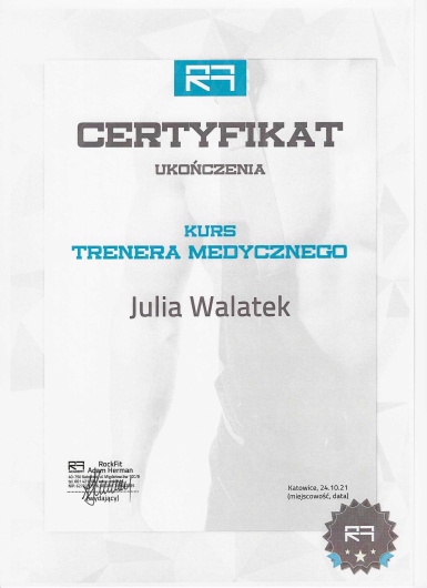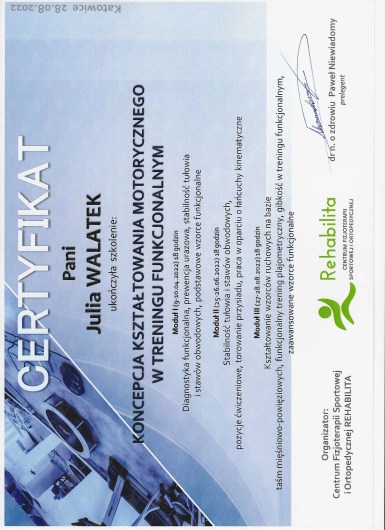 szczerą oraz miłą fizjoterapeutką. Z wizyty na wizytę zawsze widać efekty naszej ciężkiej pracy. Zawsze potrafi zmotywować do pracy. Rehabilitacja z Julią to czysta przyjemność.