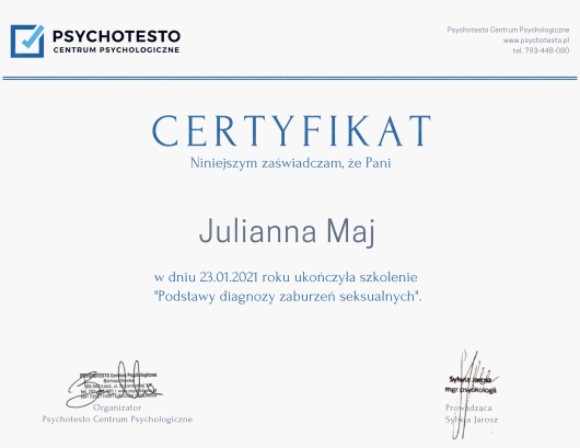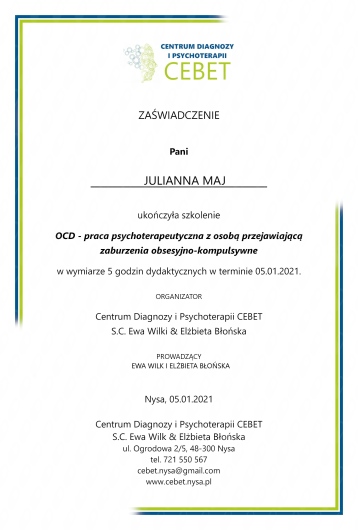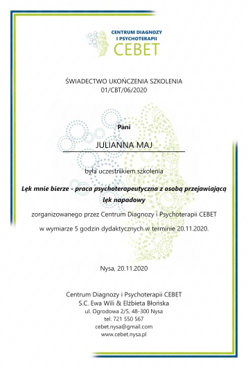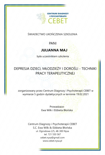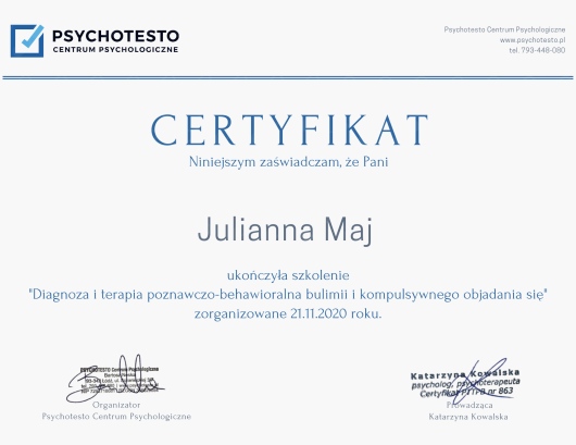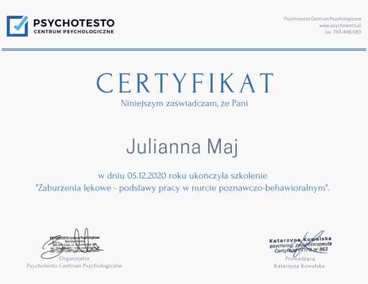 • Julianna Maj - Gabinet Psychoterapii • Konsultacja psychologiczna •