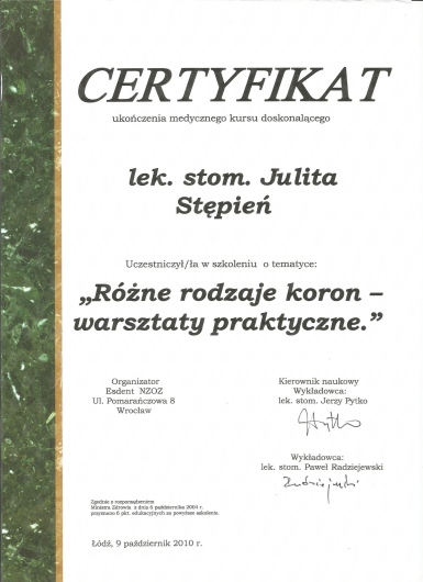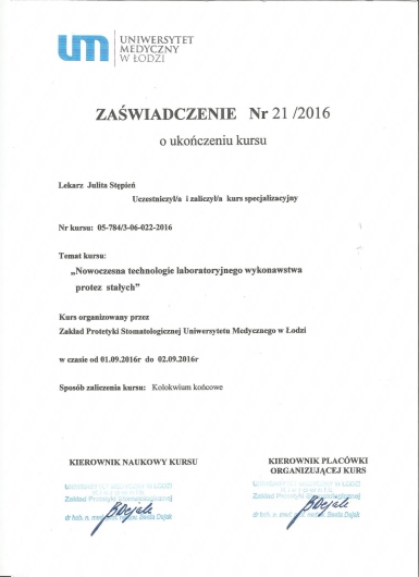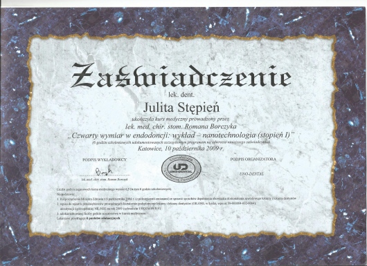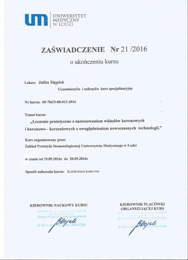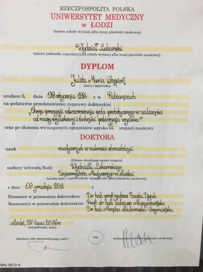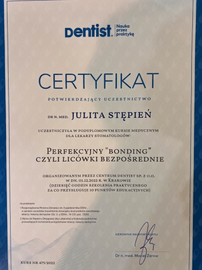 Regularnie chodzę na wizyty do Pani Doktor i jestem zadowolona. Pani doktor jest świetnym specjalistą zarówno w leczeniu zębów jak i stomatologii estetycznej - szczerze polecam.