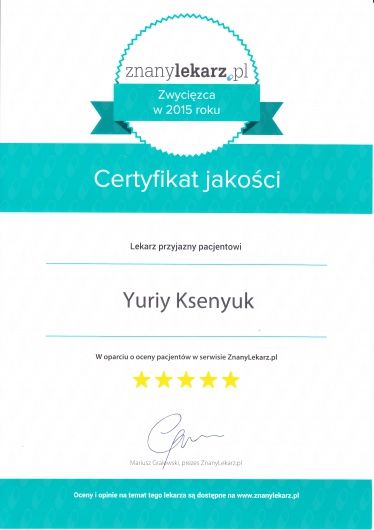 Jurij Kseniuk: co mówią pacjenci?488 osób dodało swoją opinię. Jurij Kseniuk ma średnią ocen 5 (na 5 gwiazdek).