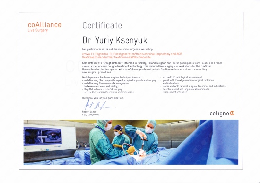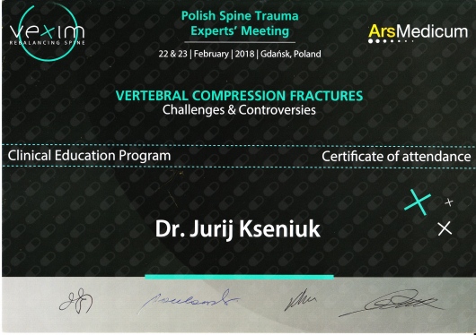 Dwukrotny zwycięzca w międzynarodowym konkursie Vexim Rebalancing Spine - najlepszy kliniczny przypadek miesiąca w marcu 2017r i w maju 2018r.