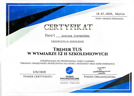 Pani Justyna ma super podejście, dużo zrozumienia i wyrozumiałości. Polecam serdecznie.
