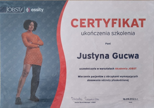 Jaki jest zakres porad oferowanych przez Justyna Gucwa?Justyna Gucwa to fizjoterapeuta. Na podstawie swojego doświadczenia i wykształcenia Justyna Gucwa oferuje usługi takie jak: Konsultacja uroginekologiczna, fizjoterapia kobiet w ciąży / fizjoterapia okołoporodowa, Drenaż limfatyczny (dłuższa wizyta), terapia przeciwbólowa, Konsultacja fizjoterapeutyczna po zabiegach chirurgii plastycznej, Fizjoterapia endometriozy, fizjoterapia przed- i pooperacyjna, fizjoterapia, Drenaż limfatyczny/ masaż po liposukcji, ćwiczenia indywidualne pacjentek po mastektomii.
