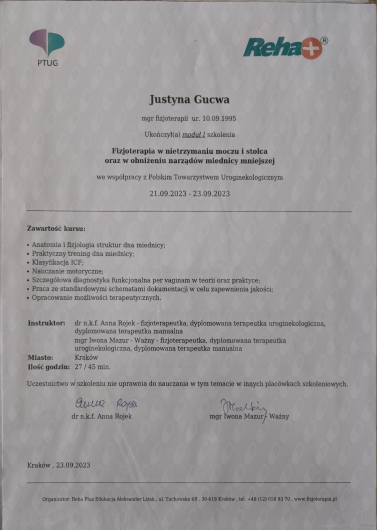 • 21-23.10.2023 do 31.08.2024 - Fizjoterapia w nietrzymaniu moczu i stolca oraz w obniżeniu narządów miednicy mniejszej