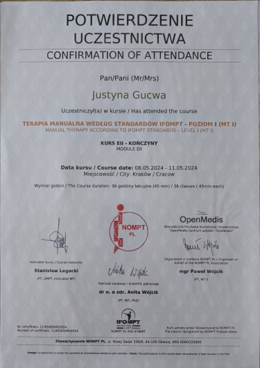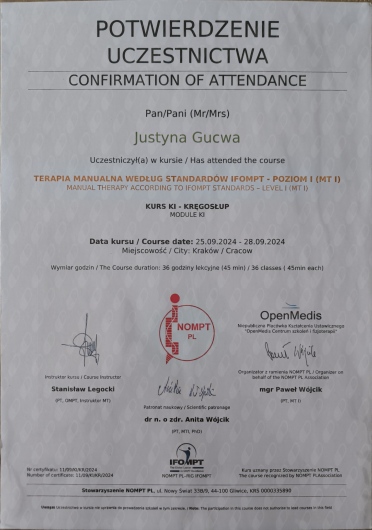 ◦ TERAPIA MANUALNA WEDŁUG STANDARDÓW IFOMPT
