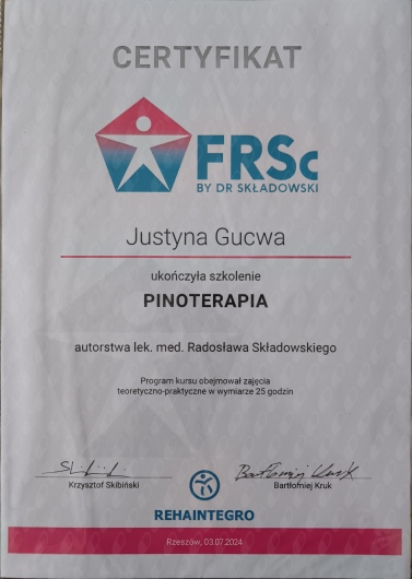 Pani Justyna jest naprawdę świetną specjalistką. Zgłosiłam się do niej z powodu kontuzji związanej z kolanem. Bardzo sprawnie określiła problem i pomogła go szybko rozwiązać. :) zapewnia też bardzo miłą atmosferę podczas wizyty.