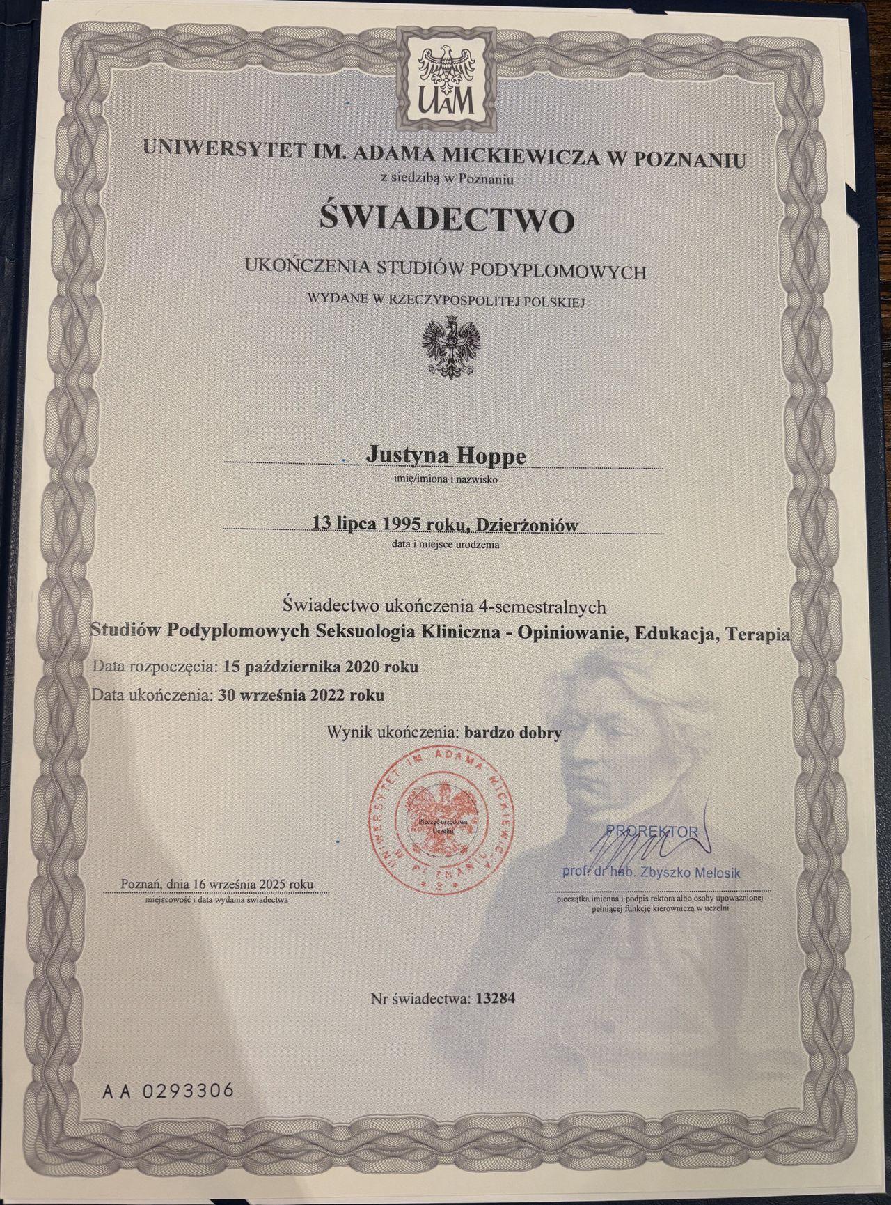 Studia w USA (University of North Carolina at Greensboro) – specjalizacja w psychologii klinicznej i gender.