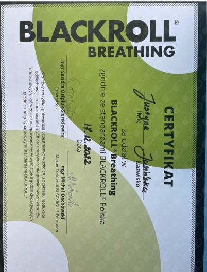 ● Blackroll Breathing – reedukacja oddechowa, Warszawa 12.2022 r,