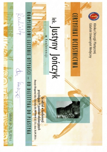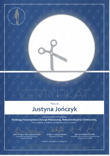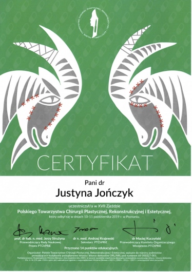 Jestem absolwentką Uniwersytetu Medycznego im. Piastów Śląskich we Wrocławiu. Ukończyłam szkolenie specjalizacyjne w Klinice Chirurgii Plastycznej Uniwersyteckiego Centrum Klinicznego w Gdańsku. Jestem członkiem Polskiego Towarzystwa Chirurgii Plastycznej, Rekonstrukcyjnej i Estetyczne. Pasjonuje mnie chirurgii twarzy i szyi.